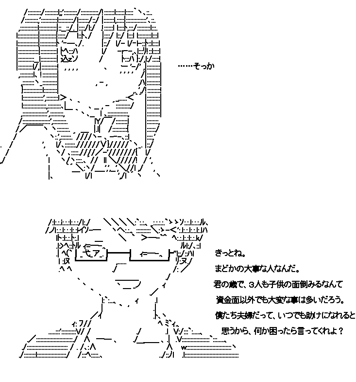 詢子「結局、私は安静にしていて、知久が必至に働いて、お金を稼いでくれた」